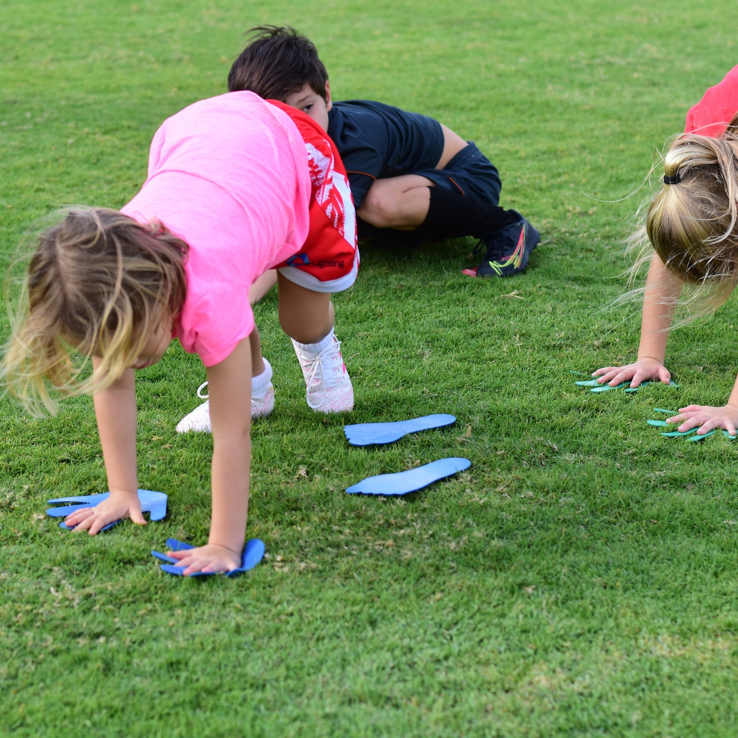 Set of 12 colourful foot print floor markers. 6 left foot and 6 right foot. Made from durable non-slip rubber.
