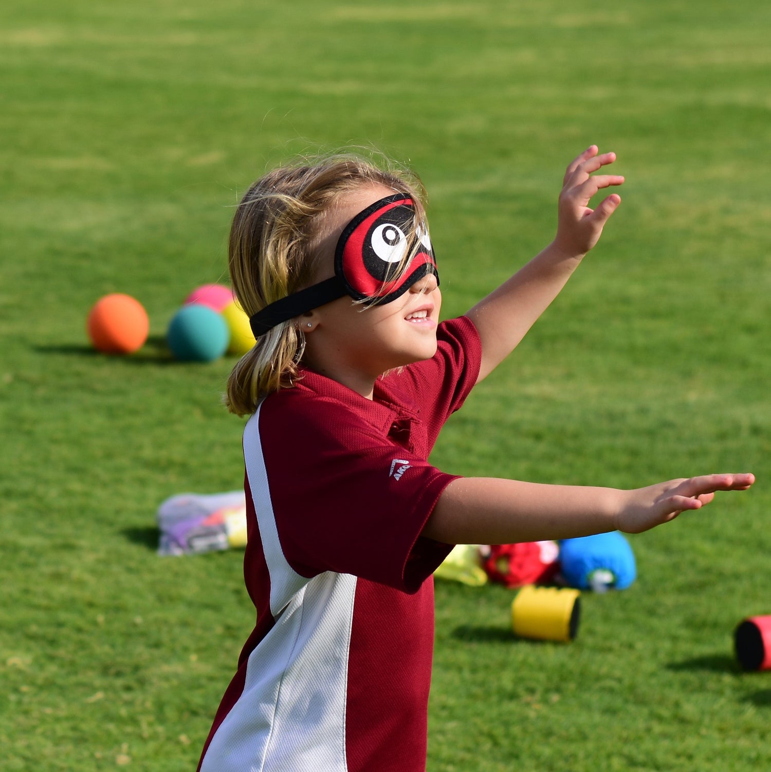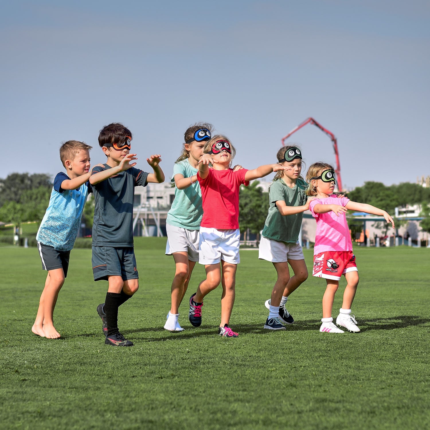 Set of 6 brightly coloured polyester blindfolds with an elastic strap. Perfect for sensory and perception games.